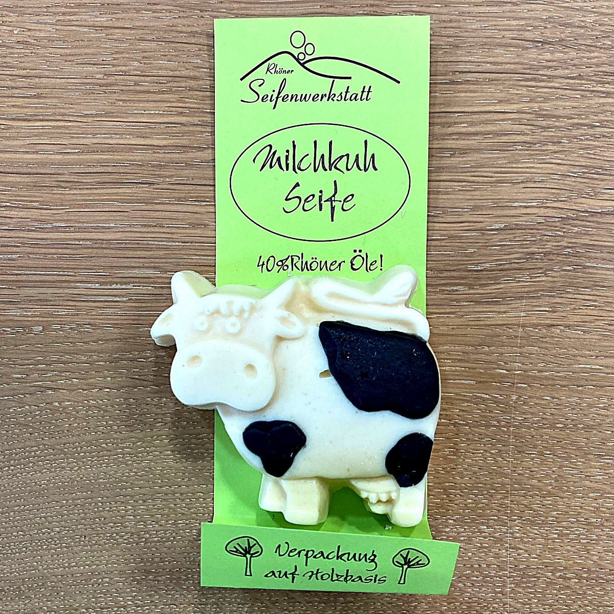 Je nach Variante enthält die Seife Kuhmilch oder Ziegenmilch und einen besonders hohen Anteil von 40 % Rhöner Ölen (bezogen auf die Fettmasse). Dadurch entsteht eine hautfreundliche, rückfettende Naturseife für die tägliche Reinigung von Händen und Körper.